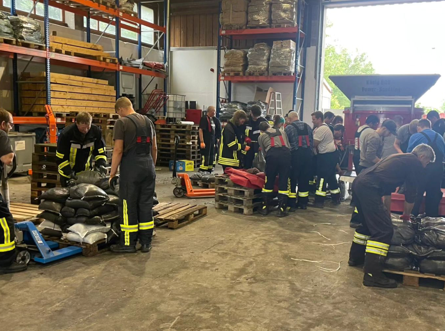 KBM Gebiet 3/1, aufgrund der angekündigten Regenmassen wurde im Lankreis Mühldorf der Bestand der Sandsäcke erhöht, um im Notfall gerüstet zu sein. Deshalb wurden am 31.05.2024 von 35 Kameraden 2500 Sandsäcke befüllt und gelagert. Wir haben mit der Feuerwehr Grünbach, Feuerwehr Taufkirchen, Feuerwehr Weiding, Feuerwehr Flossing nach ca. 1 h und 45 min die gewollte Menge erreicht.