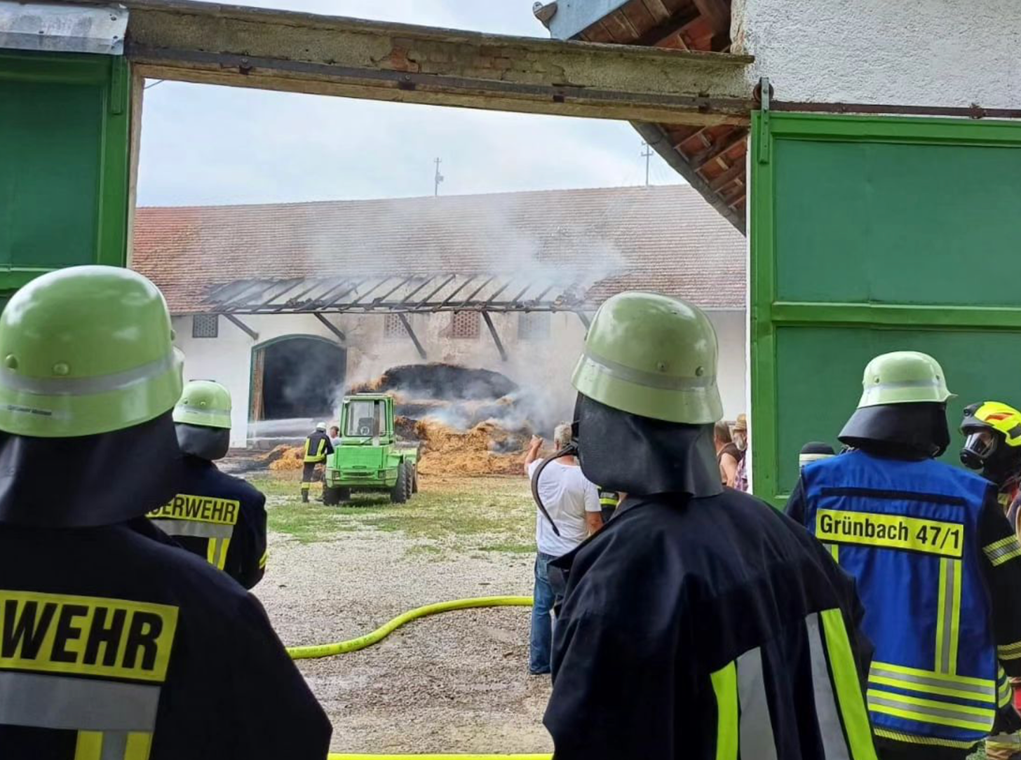 Am 30.06.2024 wurden wir um 11:07 Uhr mit dem Stichwort B4 nach Grünbach zu einem Bauernhof alarmiert. Dort brannte ein Strohhaufen direkt an einem Gebäude. Am Einsatzort unterstützten wir mit unserem Schlauchanhänger und bauten die Wasserversorgung auf. Außerdem setzten wir unsere Pumpe ein, als die Situation unter Kontrolle war, damit das Einsatzpersonal reduziert werden und die ersten Feuerwehren nach Hause fahren konnten. Dank dem schnellen Eingriff unserer Kameraden konnte schlimmere Schäden verhindert und das Feuer schnell eingedämmt werden.
